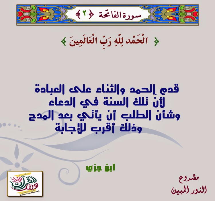 قال تعالى الحمد لله رب العالمين الرحمن الرحيم المكتبة التعليمية