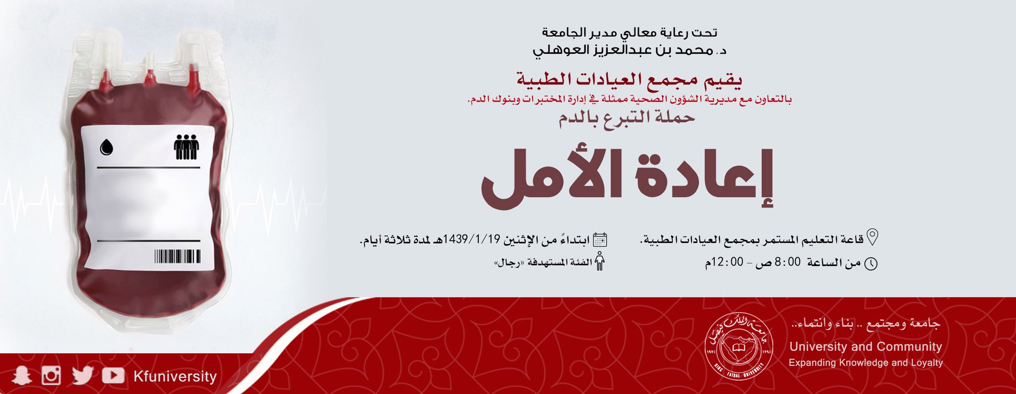 Uzivatel جامعة الملك فيصل Na Twitteru مجمع العيادات الطبية يعتزم تنظيم حملة للتبرع بالدم الإثنين تحت عنوان إعادة الأمل Https T Co Prpjc9ibky
