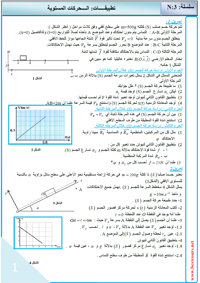 تمارين في الحركات المستوية تطبيقات قوانين نيوتن