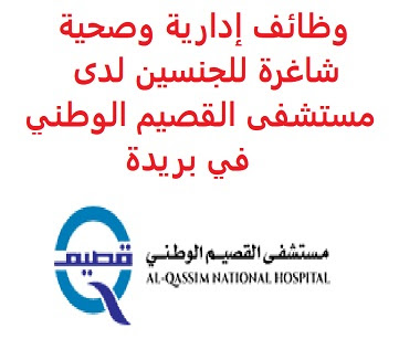 وظائف شاغرة في السعودية وظائف السعودية وظائف إدارية وصحية شاغرة للجنسين لدى مستشفى القصيم الوطني في بريدة